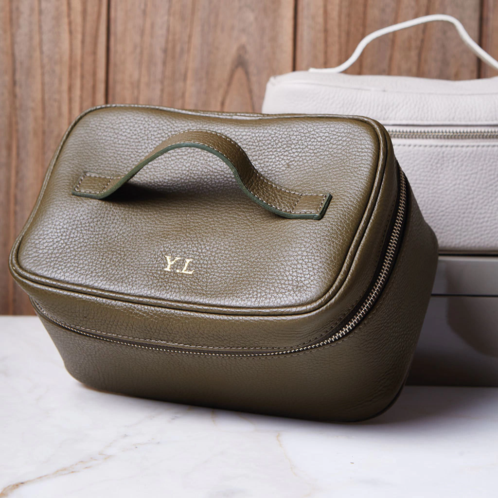 Realizado en cuero graneado 100% vacuno, su calidad se nota en cada detalle. El interior cuenta con un bolsillo elástico, que ofrece mayor capacidad para tus productos. Además, sus cierres metálicos garantizan la seguridad de tus pertenencias.
