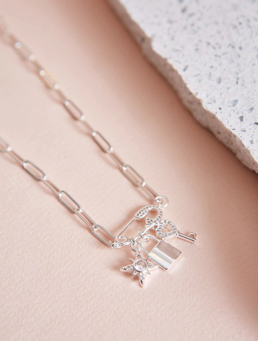 Collar con eslabón y dijes con alfiler de gancho