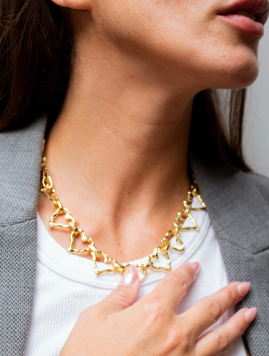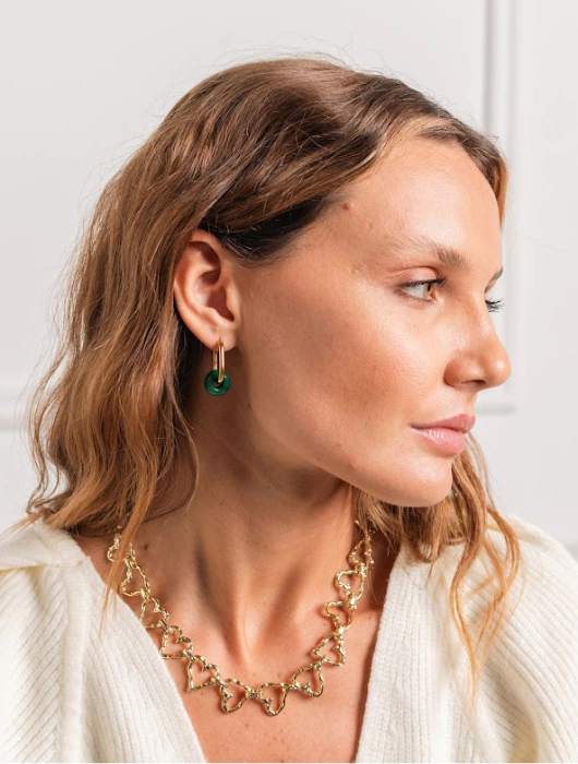 Fabricado en acero quirúrgico con baño dorado, es ideal para combinar con un lindo escote o una remera clásica. Perfecto para el día y la noche, aporta un toque elegante y moderno a tu estilo.