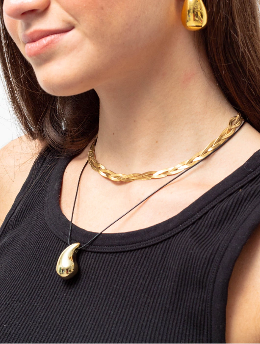 Collar trenzado chato de acero quirúrgico con baño dorado