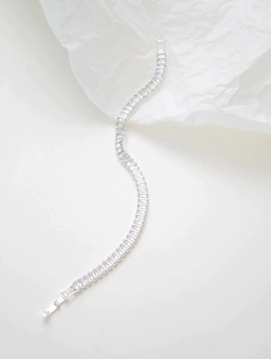 Pulsera plata con baguette ideal para una noche especial , acero quirúrgico con baño de plata 17 cm aprox con un cierre delicado a tu medida