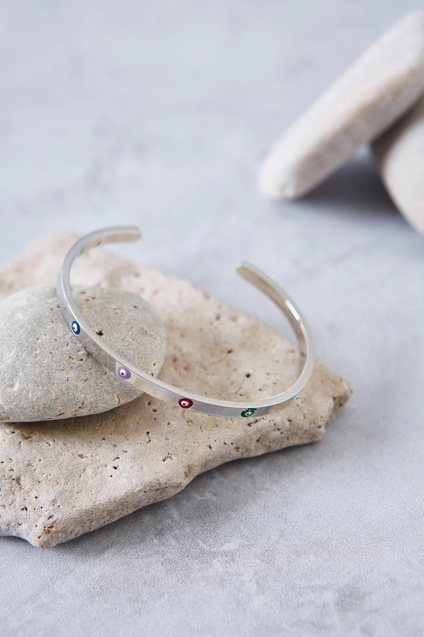 Semiesclava con detalle de ojitos de colores. Ideal para combinar con ottas pulseras